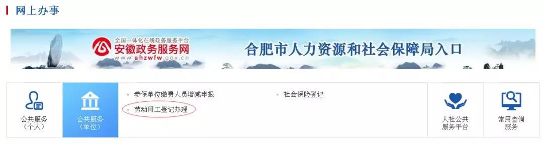 劳动者可通过合肥市人力资源和社会保障局门户网站(网址:rsj.hefei.gov.cn)“网上办事-公共服务(单位)”栏目办理“劳动用工登记”事项。
